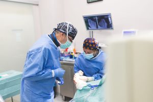 El centro consta, además, con una sala de cirugía dotada de un equipo de rayos X, donde se tratan las patologías del pie que requieren tratamiento quirúrgico mediante Cirugía de Mínima Incisión o también mediante diversas técnicas con láser.